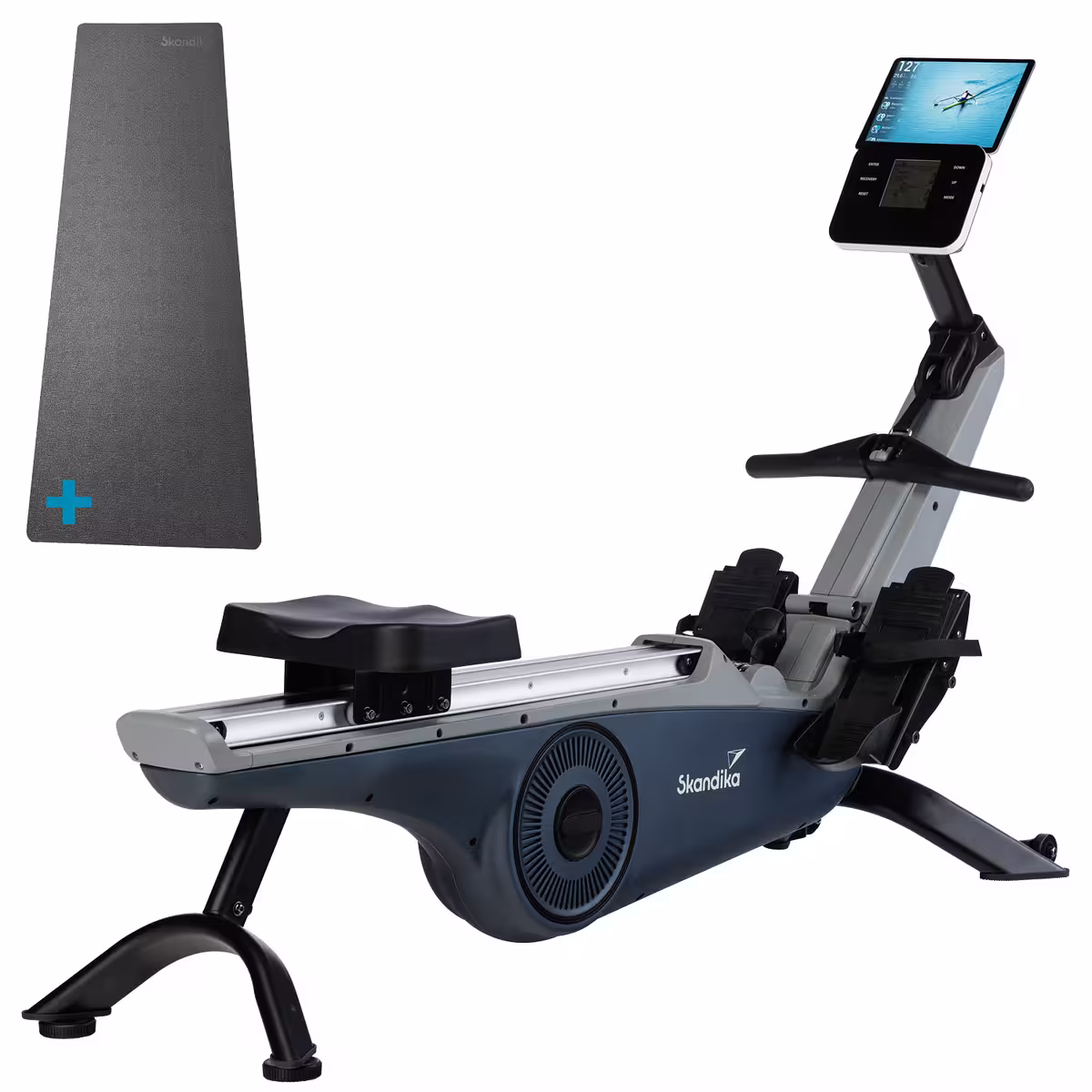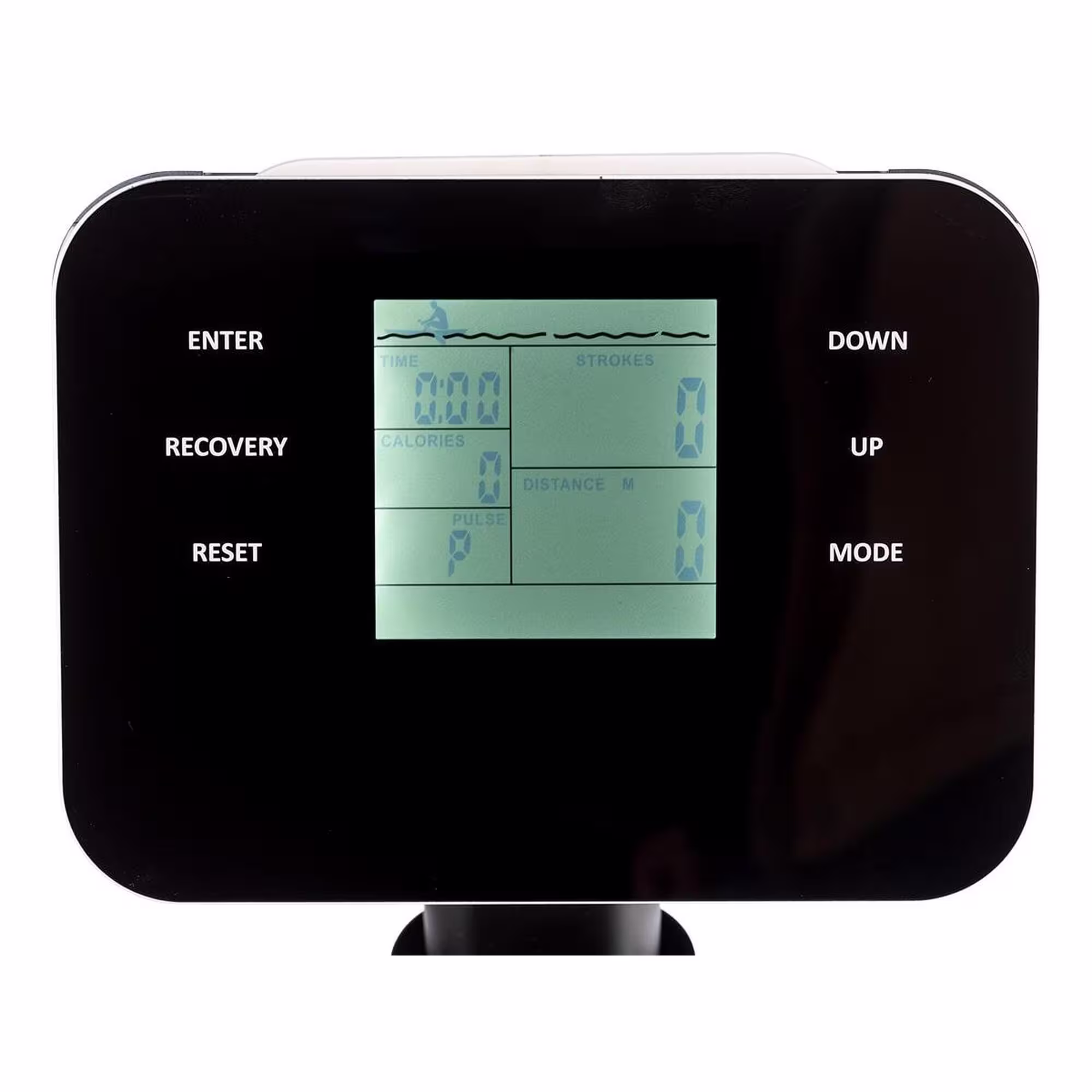 - Affichage à l’écran : temps, temps/500m, coups de rame, nombre total de coups de rame, coups de rame/min, distance, calories, pouls, watts